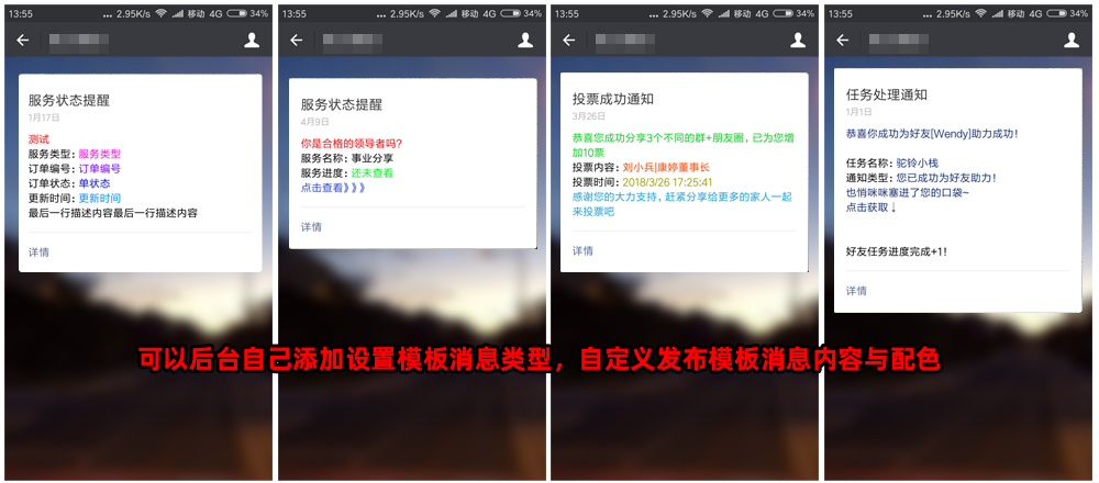 可自定義推送模板消息功能,不限制每天推送次數