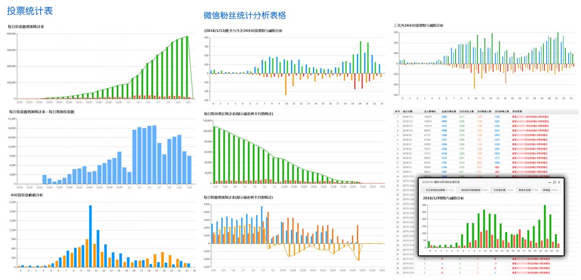 每天都有詳細的漲粉統計、投票統計,詳細到24小時統計與分析,讓你隨時了解現在活動的發展以便于隨時調整活動玩法